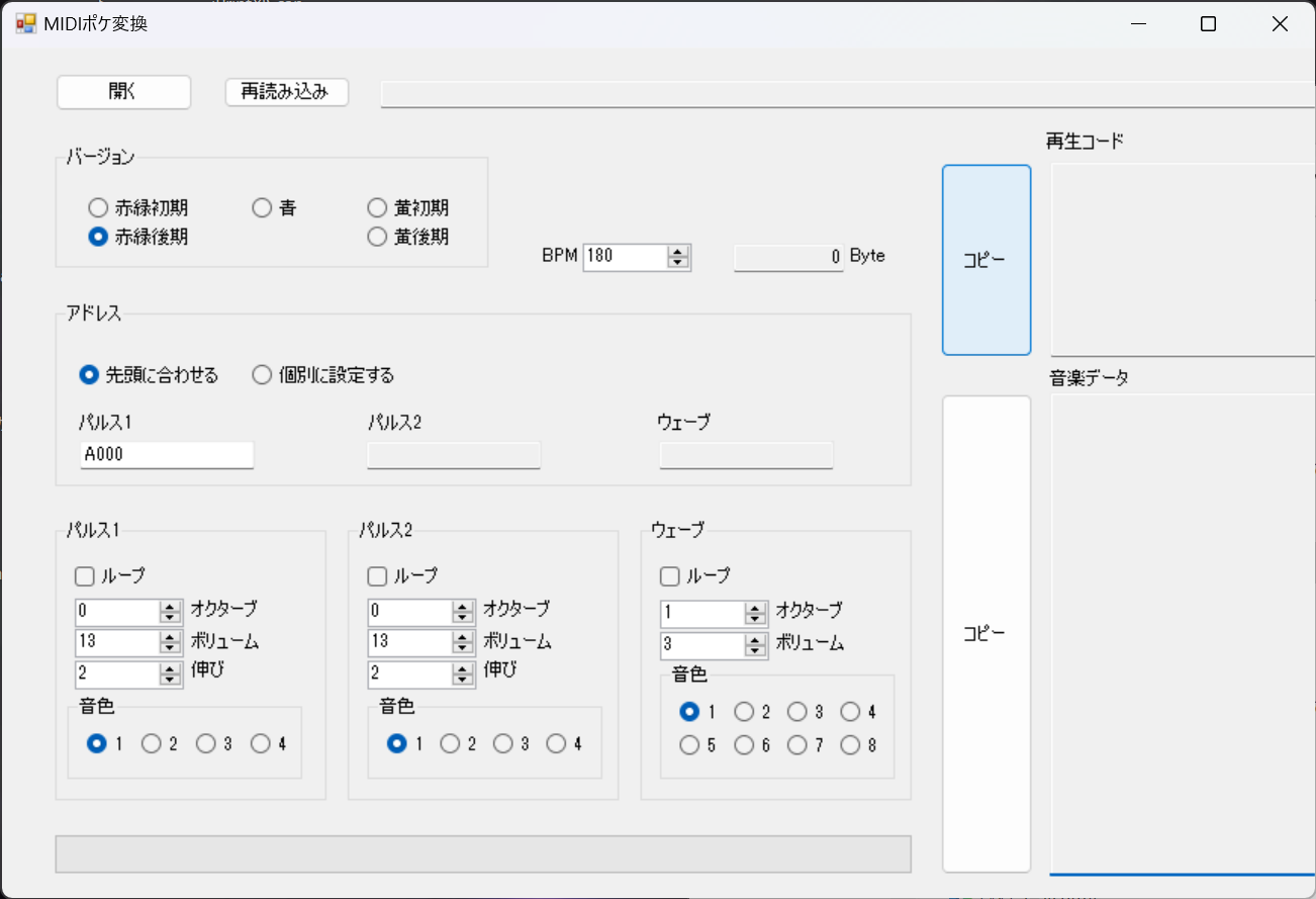 以前作ったMIDIファイルをポケモンの音楽データに変換するプログラムです。